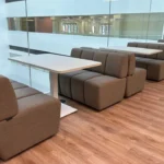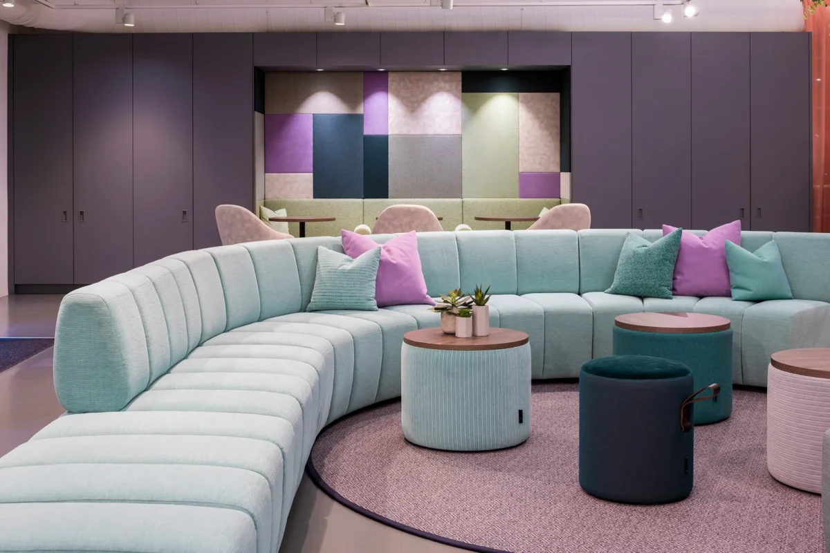 BEE Fluted modular seating range with its soft fluting creating a visually dynamic look. The range of undulating straight sections and gentle curves can be arranged together to form inviting spaces where employees can collaborate or relax. Designers can create a cohesive design aesthetic for the entire workplace.
