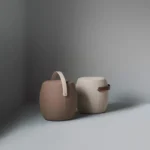 1. Upholstered in fabric or leather. 2. Standard leather Elmo Soft. 3. Laminated wood handle in white pigmented massive ash.